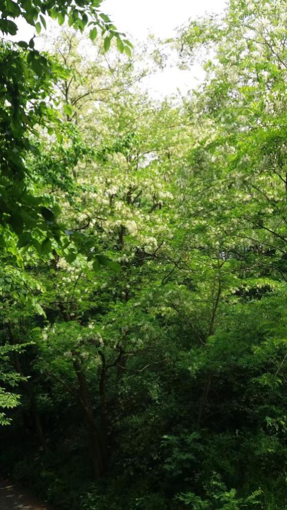 Dopiero, co kwitnienie zakończyły kasztanowce. Akacje są jeszcze bardziej spektakularne, burza białych kwiatów na każdym drzewie przyciąga i robi wrażenie. Mimo, że nie są gatunkiem lasotwórczym wpisały się w krajobraz towarzyszący człowiekowi. Niemało jej również i na Pałukach. Pożyteczne w ekosystemie, swojskie oblicze, zjednały wielu sympatyków. Inwazyjność i obce pochodzenie rekompensują sobie praktyczną przydatnością. Białymi bukietami przymilają się nie tylko do pszczół.