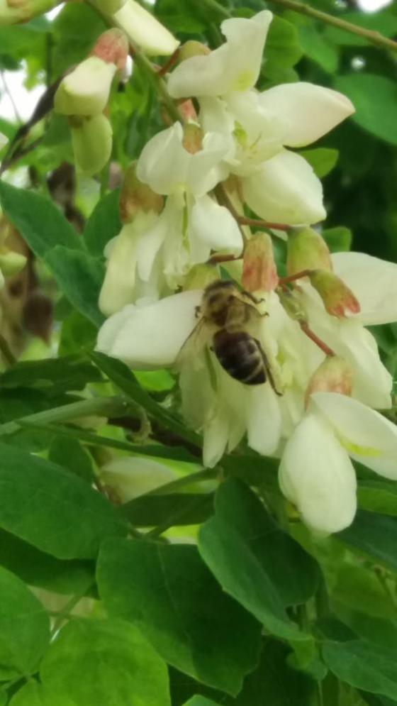 Wydaje kwiaty również na młodych pędach, plantacje mają zatem mieć znaczenie dla pszczół. W okresie kwitnienia rodziny pszczele osiągają pełnię siły i właściwą do zbioru miodu strukturę wiekową. Młodsze okazy robinii zakwitają na dobrze nasłonecznionych stanowiskach na tydzień przed czasem, pozwalając pszczołom przyzwyczaić się do swojej obecności. Przy sprzyjającej pogodzie, kiedy zakwitają okazałe drzewa, pszczoły idą na całość. Pszczelarze twierdzą, że barbarzyństwem jest wykonywanie jakichkolwiek czynności niepokojących pszczoły w tym czasie. Nie mówiąc już o opryskach …