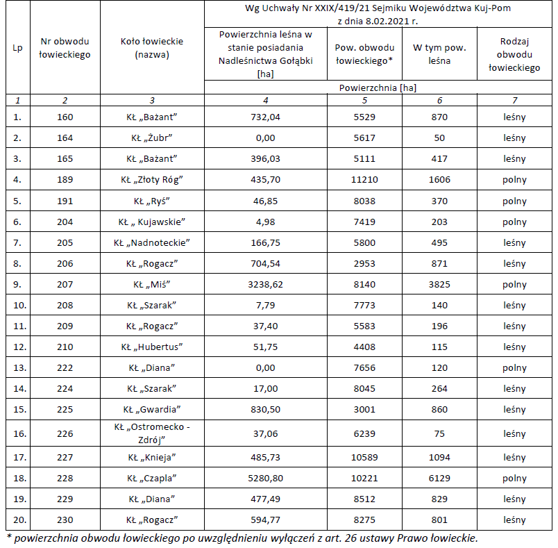 Gospodarka łowiecka na terenie Nadleśnictwa Gołąbki prowadzona jest w 20 obwodach łowieckich dzierżawionych przez 15 kół łowieckich.